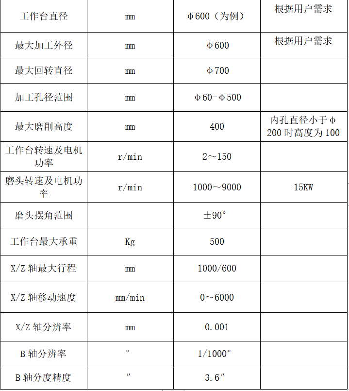 機床主要規(guī)格參數(shù)